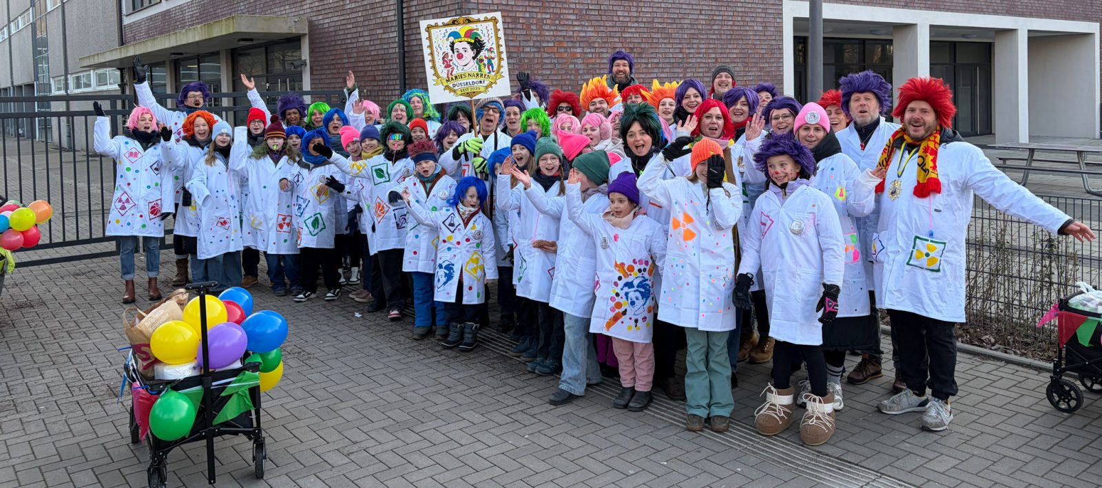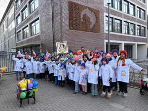 In diesem Jahr sind „Maries Narren“ das erste Mal als Fußgruppe beim Gerresheimer Veedelszoch mitgelaufen: rund 75 Schüler:innen, Kolleg:innen und Eltern feierten am Sonntagmittag bei bestem Wetter, guter Musik und fröhlicher Stimmen ihr karnevalistisches Treiben! Ein dreifaches MCG Helau!