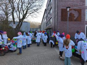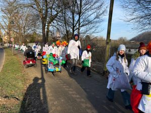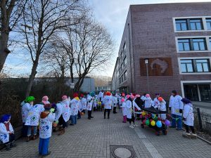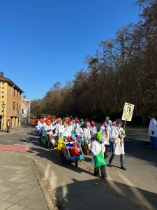 In diesem Jahr sind „Maries Narren“ das erste Mal als Fußgruppe beim Gerresheimer Veedelszoch mitgelaufen: rund 75 Schüler:innen, Kolleg:innen und Eltern feierten am Sonntagmittag bei bestem Wetter, guter Musik und fröhlicher Stimmen ihr karnevalistisches Treiben! Ein dreifaches MCG Helau!