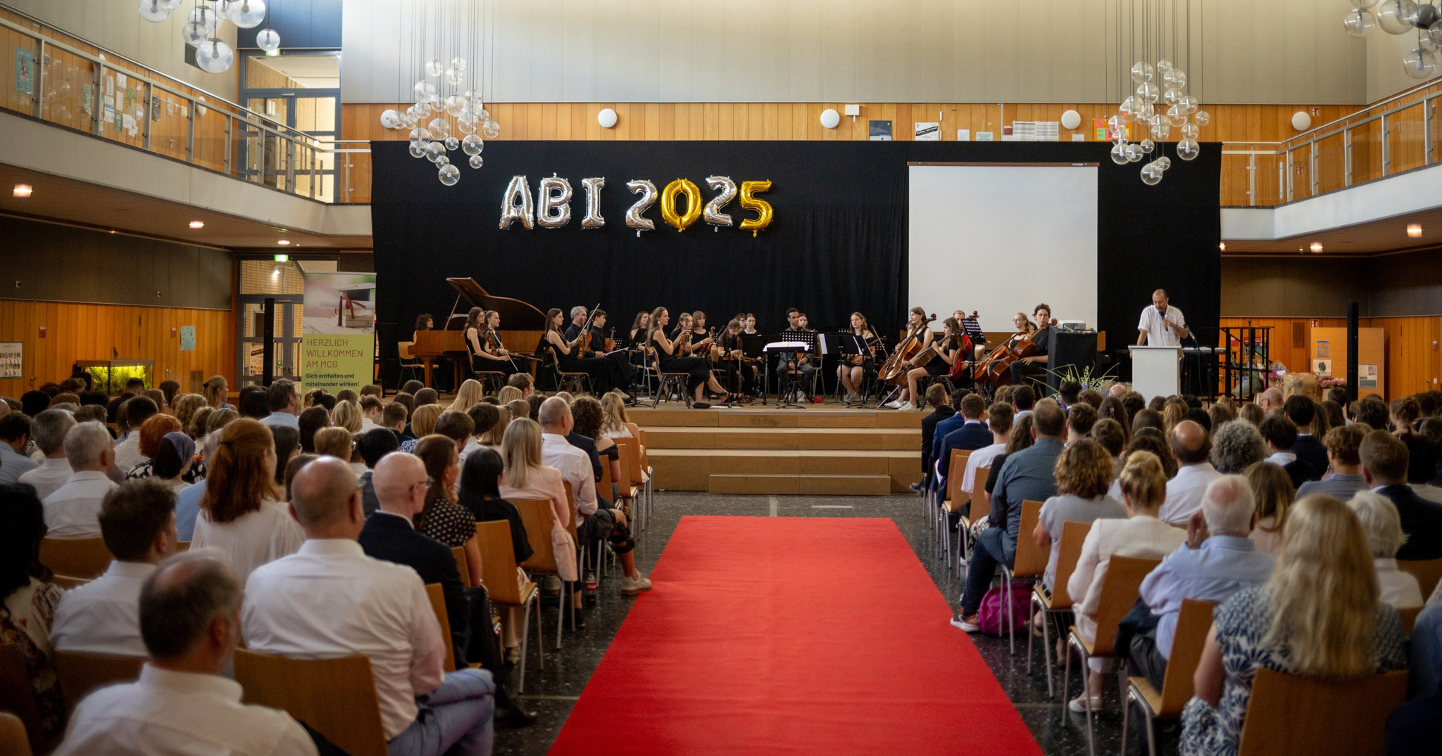 17.11.2025 Anmeldung am MCG - Schuljahr 2026/27 Die Termine für die Anmeldung der Viertklässler:innen am MCG für das Schuljahr 2026/27 können ab sofort gebucht werden. Über die entsprechende Website der Stadt Düsseldorf können Sie einen freien Termin im Zeitraum von Montag, den 09.02.26 bis Mittwoch, den 11.02.2026 buchen. 16.11.2025 "The most wonderful time..." - Adventsbasar am 28.11.2025 Die Tage werden kürzer, erste Kerzen werden angezündet, die Radiosender holen „Last Christmas“ aus dem Archiv: die Adventszeit steht bevor. In alter Tradition lädt in dieser Zeit der AK Festkultur zum Adventsbasar am Freitag, den 28.11.25 ans MCG ein. 10.11.2025 Konzert "schwerelos" in der Deutschen Oper am Rhein - 23.11.2025 Nach zwei Jahren haben wir die Ehre, erneut mit unserem Orchester und den Chören auf der Bühne der Deutschen Oper am Rhein aufzutreten. Wir laden herzlich zu diesem besonderen Konzert am So, den 23.11.25 um 11 Uhr ein! 09.11.2025 Ein Rückblick auf den "Tag der offenen Tür 2025" Am vergangenen Freitag hießen wir insbesondere Viertklässler:innen und ihre Eltern sowie Schüler:innen, die einen Schulwechsel anstreben wollen, beim Tag der offenen Tür willkommen. 13.10.2025 Das Project NADIYA sagt "Danke für 28.000€!" Bei unserem diesjährigen Charity-Run im Juli wurden insgesamt 28.007,56€ erlaufen! Marie Gregor vom Project NADIYA e.V. bedankt sich in einem Schreiben an die Schulgemeinde. 30.09.2025 Einladung zum Tag der offenen Tür am 07.11.2025 Wir laden alle Viertklässler:innen, Eltern und Schüler:innen, die einen Schulwechsel anstreben, zu unserem diesjährigen Tag der offenen Tür am Freitag, den 07. November 2025 von 16.00-19.00 Uhr ein. 25.09.2025 mein job! dein job? - Referent:innen gesucht! mein job! dein job? - Die Berufsorientierungstage der beiden Gerresheimer Gymnasien werden in diesem Schuljahr vom 27. bis 29. Januar 2026 stattfinden. Gesucht werden Referent:innen! 24.09.2025 Concert symphonique franco-allemand à Vence! In der vergangenen Woche reiste unser Orchester für eine Konzertreise im Rahmen des deutsch-französischen Austauschs nach Vence an der Côte d’Azur. 08.09.2025 Der Opernflyer 2025/26 ist da! Unsere Kooperation mit der Deutschen Oper am Rhein Im Rahmen der Kooperation mit der Deutschen Oper am Rhein können Mitglieder der Schulgemeinde des Marie-Curie-Gymnasiums sowie deren Verwandte und Freunde auch für die Spielzeit 2025/26 Karten zu exklusiven Sonderpreisen bestellen. 04.09.2025 Klasse(n)-Team! Unsere 6. Klassen auf Klassenfahrt in Monschau! Für unsere 6. Klassen begann das Schuljahr direkt mit einer dreitägigen Klassenfahrt nach Monschau, um die Klassengemeinschaft zu stärken. 24.08.2025 Konzerte, Ausflüge, Projekttage und Co. - Ein Rückblick Bevor am Mittwoch das neue Schuljahr beginnt, blicken wir noch einmal zurück auf die letzten Tage vor den Sommerferien: Konzerte, Ausflüge, unsere Projekttage und ein gemeinsames Schulfest bildeten die Höhepunkte am Ende des Schuljahres. 07.07.2025 ABINOPOLY 2025 - Ein Rückblick auf die Abiturfeierlichkeiten Wir gratulieren unseren 94 Abiturient:innen zum bestandenen Abitur! Wir wünschen Euch alles erdenklich Gute für Eure Zukunft und freuen uns Euch wiederzusehen! 03.07.2025 Einladung zum Sommertreff am 09. Juli 2025 Der AK Festkultur lädt herzlich zum diesjährigen Sommertreff am Mittwoch, den 09.07.25 von 15-18 Uhr auf dem Schulgelände ein! 03.07.2025 "Vergissmeinnicht" - eine kreative Zeitreise gegen das Vergessen In dieser Woche haben Schüler:innen, die in der Projektwoche das Projekt "Vergissmeinnicht - eine kreative Zeitreise gegen das Vergessen" gewählt haben, die Möglichkeit sich in besonderer Weise darauf vorzubereiten. 26.06.2025 Einladung zum Schulkonzert "schwerelos" - 06.07.25, 18 Uhr Herzliche Einladung zum diesjährigen Schulkonzert am Sonntag, den 06. Juli 2025 um 18 Uhr im Saal der Rudolf-Steiner-Schule. 06.06.2025 Forum Marie Curie: Mein Wissen – Deine Meinung?... zum Thema Antisemitismus Nach der erfolgreichen Kick-Off der Veranstaltungsreihe lädt die AG „Politische Diskussionen zur Meinungsbildung" zum zweiten „Forum Marie Curie: Mein Wissen – Deine Meinung?“ zum Thema Antisemitismus am 30.06.2025 um 18 Uhr im PZ ein.